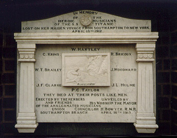 A large portion of my family lives in England, and some of them live in Southampton, the town from which Titanic set sail. On one of my trips to England (June 1998) I took some pictures of the Titanic Memorials in Southampton. These pictures do not do the memorials justice, but they will give people an idea what they look like.